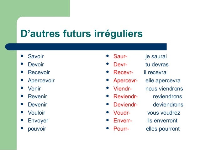 futur devoir apercevoir recevoir revenir.